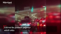 Edirne'nin Kapıkule Sınır Kapısı bölgesinde gece saatlerinde etkili olan şiddetli yağış nedeniyle yollardan akan su nehir görüntüsü oluşturdu. Araçlar ilerlemekte güçlük çekti.