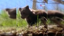 Yoldan geçen bir vatandaş tarafından çekilen görüntülerde, yavru ayının yiyecek bulmak için köy yoluna indiği görüldü. Vatandaşları gören ayı yavrusu, bir süre sonra bölgeden uzaklaştı. Haber