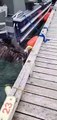 Info: Helping a soaking wet bald eagle onto the dock!