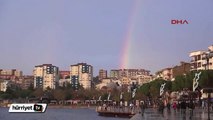 Çin Halk Cumhuriyeti’nin Haikou şehrinde yaşanan ender doğa olayı, cep telefonuyla kaydedildi. Çok nadir görülen gökkuşağı bulutu, rengarenk bir şekilde gökyüzünde belirdi.