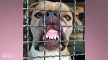 American Bully Puppy Swings By Grabbing Owner's Sock With His Teeth While They Eat