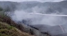 https://www.pupia.tv - Intervento a Pognana Lario (Como) per l'incendio del magazzino di una falegnameria: interessati dalle fiamme i tetti di due vicine abitazioni, nessuna persona coinvolta. Quattro squadre al lavoro nelle operazioni di spegnimento. (05.09.22)