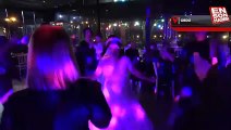Gelin ve damat, salonun önünde yakınları ve misafirler tarafından coşkuyla karşılandı.