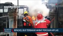 Saat pengelasan bus, percikan api diduga menyambar kabel akibat angin kencang.