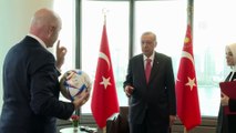 Cumhurbaşkanı Recep Tayyip Erdoğan, New York'ta görüştüğü FIFA Başkanı Gianni Infantino'nun hediye ettiği topa kafa attı.