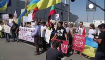 Deux manifestations à St-Nazaire pour et contre la livraison de navires de guerre Mistral à la Russie