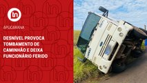 Desnível provoca tombamento de caminhão e deixa funcionário ferido