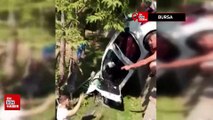 Bursa'da yoldan çıkan otomobil şarampole uçtu