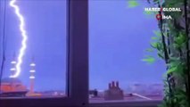 İstanbul Büyükçekmece'de Kuba Camisi'nin paratonerine yıldırım düştü! O anlar kamerada...
