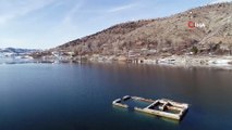 Elazığ'da suyun çekildiği baraj sahasındaki 83 yıllık tren istasyonu gün yüzüne çıktı