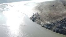 Barajda, suyun çekildiği bölgede el bombası bulundu