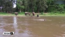 Nehirde boğulan adamın yardımına fil koştu