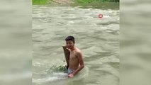 Girdiği nehirde kaybolan gencin son görüntüleri ortaya çıktı... Gencin helallik isteyerek yüzmeye başladığı anlar kamerada