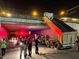 İstanbul'da bir kamyonun açık kalan dorsesi alt geçide çarptı