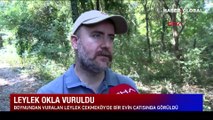 Leylek ok ile vuruldu! Çekmeköy'deki bir evin çatısına kondu