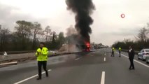 TEM otoyolunda sunta yüklü tır devrilerek yandı, trafik kilitlendi