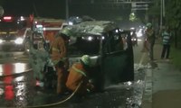 Namun kobaran api dengan cepat menyambar ke bagian lain, sehingga menghanguskan seluruh badan angkot.