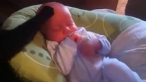 Sevimli Bebek Yavru Kediyi Kucağına Alınca Anne Kedi Dayanamıyor