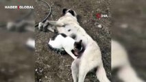 Tunceli'de duygulandıran görüntü: Köpeğe masaj yapan kedi daha sonra ondan süt içti