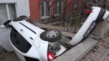 Kazada savrulan otomobil binanın bahçesine düştü: 2 yaralı