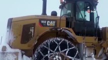 Buzlu yolda şarampole düşen midibüs yol açma dozeri ile kurtarıldı