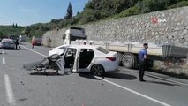 Tırla kafa kafaya çarpışan otomobil paramparça oldu