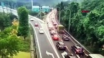 Çin'de toprak kayması sürücü son anda kaçtı