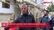 Kadıköy'de yol çöktü, beton dökme pompası yan yattı