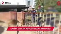 Demir kapıya sıkışan köpeği itfaiye kurtardı