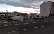 Erzurum'da 14 ton patlayıcı yüklü kamyon yola devrildi