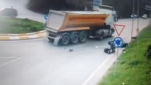 Hafriyat Kamyonu Ters Yönden Gelen Motosiklete Böyle Çarptı