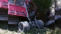 Freni patlayan hafriyat kamyonu şarampole yuvarlandı