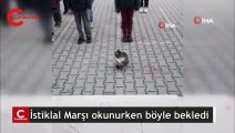 Sevimli kedi İstiklal Marşı okunurken böyle bekledi