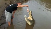 Dev timsahı elleriyle işte böyle besledi!