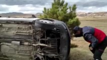 Manisa'nın Şehzadeler ilçesinde devrilen otomobildeki 2 kişi yaralandı.
