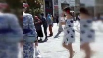 Taksim’de iki dilenci kadın birbirine girdi...Kavga anı kamerada