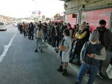 D-100’de otobüs çilesi; durakta durmayan otobüse binmek için canlarını tehlikeye atıyorlar