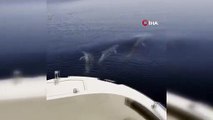 Yunuslar balıkçı teknesiyle yarıştı... O anlar kameralara böyle yansıdı