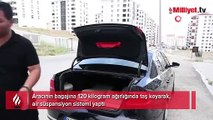 Milyonluk aracını taşla doldurdu