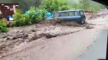 Rize Sel Suları Minibüsü Böyle Sürükledi