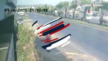 Yayaya çarpmamak için hamle yaptı, çarpıp takla attı