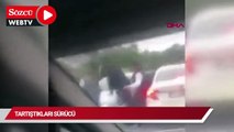 İstanbul Kadıköy'de 'de trafikte iki otomobil sürücüsü arasında çıkan tartışma kavgaya dönüştü. Trafikteki diğer sürücülerin ayırmaya çalıştığı kavgada, taraflardan biri, tartıştığı sürücünün otomobilini tekmeledi.