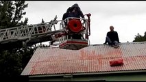 Tamir etmek için çıktığı çatıda mahsur kalan işçiyi itfaiye ekipleri kurtardı