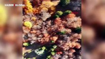 Amatör fotoğrafçıların da sıkça ziyaret ettiği yayladaki sonbahar güzellikleri, dronla havadan görüntülendi. Haber