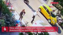 Zeki GÜNAL/İSTANBUL,(DHA) ŞİŞLİ'de, yokuş aşağı aniden hareket eden otomobilin direksiyonunu son anda kıran kişi olası bir faciayı engelledi. Otomobil kaldırıma çıkıp aydınlatma direğini devirerek durdu. Otomobili durdurmak için çabalarken sürüklenen kişinin zor anları güvenlik kamerasına yansıdı.