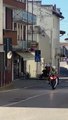 Un motard se retrouve en plein milieu d'une course cycliste... Douloureux