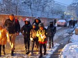 Van merkeze mevsimin ilk karı düştü, öğrenciler kar altında okullarına gitti