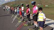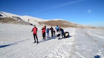 BİTLİS - Bitlis'teki kayaklı koşu sporcuları yaz mevsiminde asfaltta yaptıkları çalışmalardan sonra bu mevsimin ilk karında 2 bin 600 rakımlı Nemrut Gölü çevresinde antrenmanlarını yaptılar.