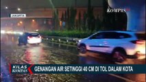 Ketinggian air sempat mencapai dua meter, dan membuat kemacetan di ruas Tol Jakarta arah Merak, dengan ekor kemacetan berada di kilometer 18.