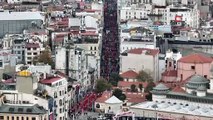 Kırmızı-beyaza boyanan cadde, dron ile görüntülendi.